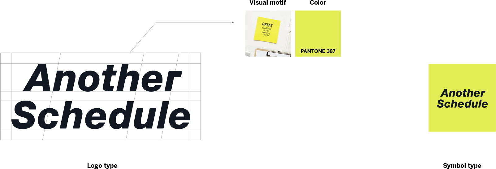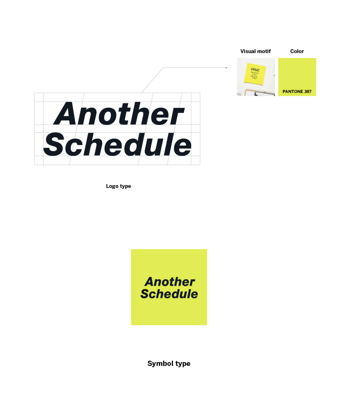 The logo and colors of Another Schedule are designed to visually represent the brand's core idea of supporting in everyday life. Inspired by Post-it notes, the design symbolizes the ongoing support and motivation the brand provides, emphasizing an active and impactful feel that fits the athleisure beauty brand.